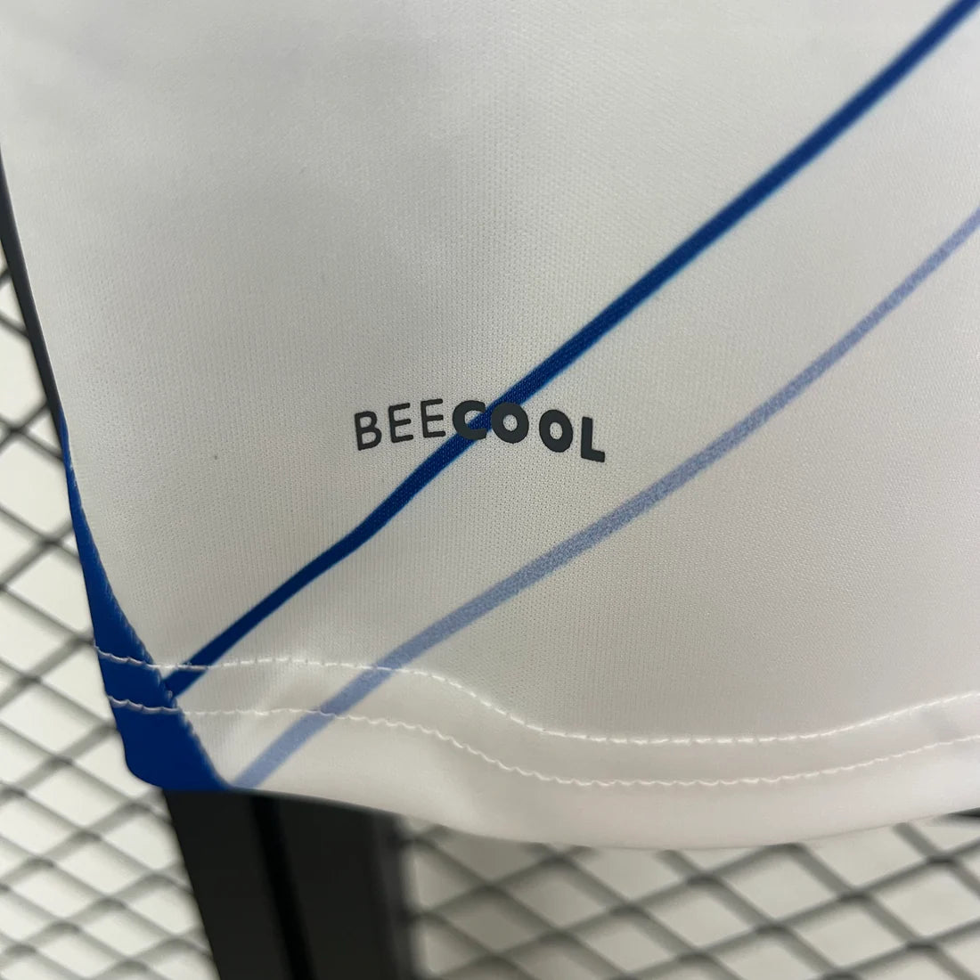 Esta versión para la temporada 2025-26 recupera el icónico símbolo de la Cruz de San Andrés a través de un patrón de líneas azules que se cruzan en el pecho sobre un fondo blanco impoluto. Los detalles en los hombros y el cuello añaden un contraste visual potente, convirtiéndola en una prenda elegante tanto para el Heliodoro Rodríguez López como para el uso diario.