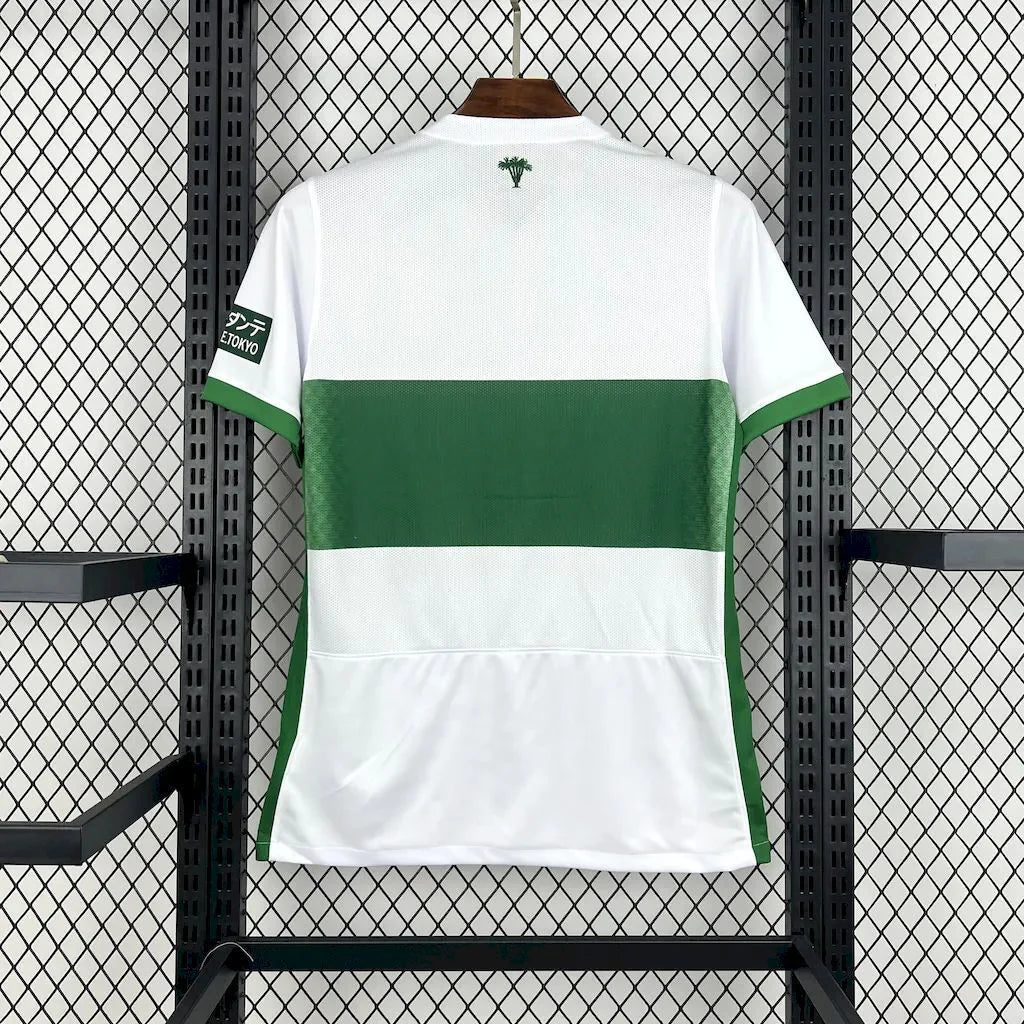 Es la esencia pura del Martínez Valero. Esta versión para la temporada 2024-25 mantiene la franja horizontal verde característica, resaltando sobre un blanco impoluto. El uso de patrocinadores en blanco sobre la franja le otorga una estética integrada y elegante, ideal tanto para el día de partido como para lucir con un estilo urbano.